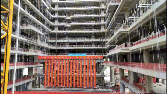 項目團隊通過力學模型計算,精確布置設12臺提升設備,以“兩側吊裝+中間二次提升”的方式,歷時96小時順利完成提升任務。