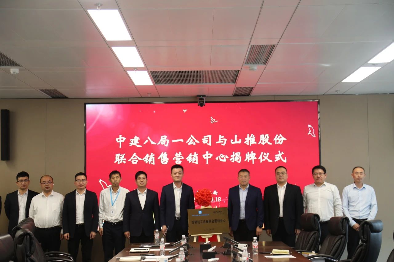 中建八局一公司與山推工程機械股份有限公司舉行聯合銷售協議簽約儀式,山推工程機械股份有限公司總經理助理、山推智慧工程科技有限公司董事長趙立軍,總經理劉健,中建八局一公司副總經理、總工程師谷力,科技質量部、企業策劃與管理部、工程研究院、數字科技公司相關負責人參加簽約儀式。