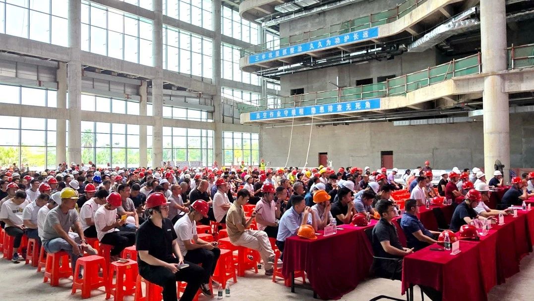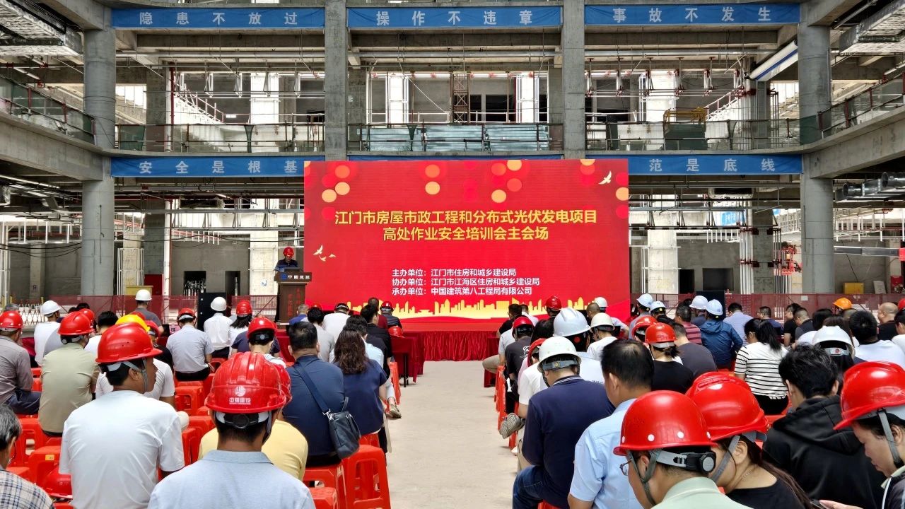 近日,江門市2025年二季度全市房屋市政工程質(zhì)量安全工作會議暨高處作業(yè)安全培訓(xùn)會在中建八局承建的江門市中心醫(yī)院新院區(qū)建設(shè)項目召開。