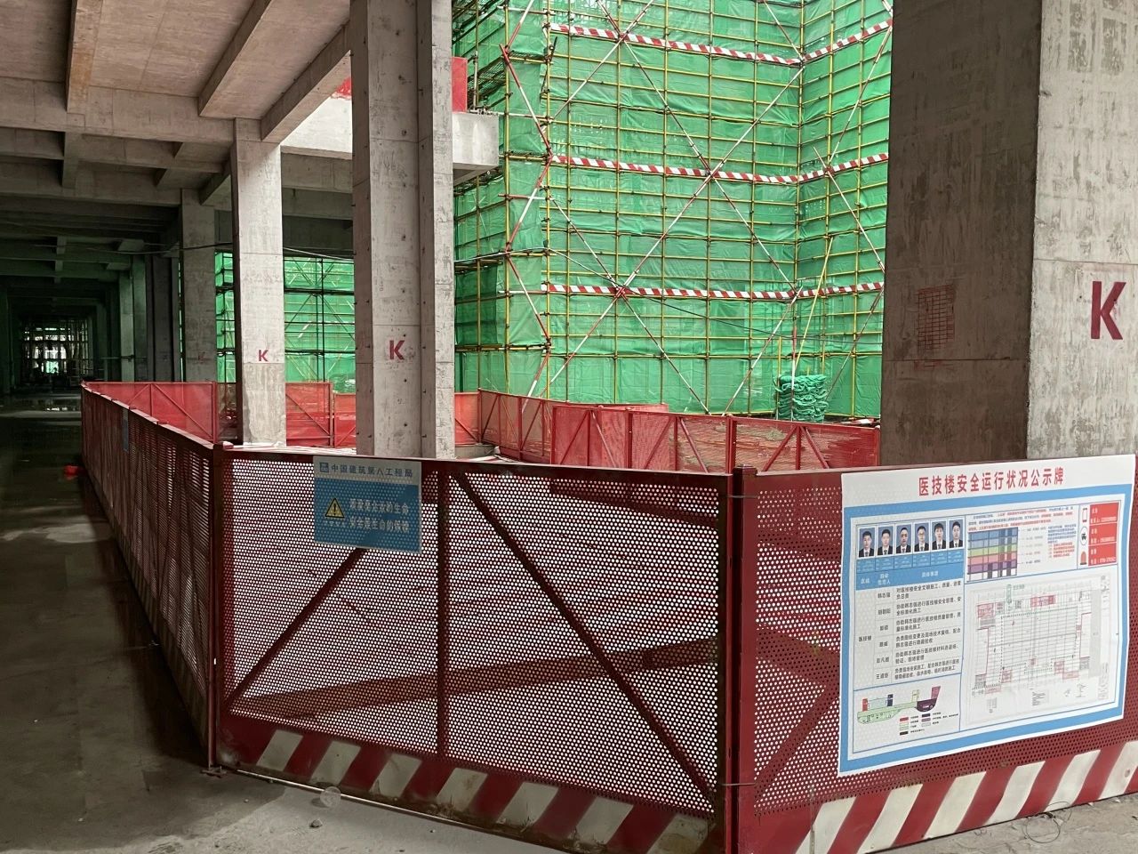 項目應(yīng)用“上五層”安全管理機制,作業(yè)層快速設(shè)置鋼筋網(wǎng)片、模板防護拆模、拆頂層聚焦樓梯、洞口鋼管防護,清理層以材料轉(zhuǎn)運、文明施工為主,成型層高標(biāo)準(zhǔn)執(zhí)行首層樣板制,形成安全管理“流水作業(yè)”,以規(guī)范化管理保障現(xiàn)場作業(yè)安全。