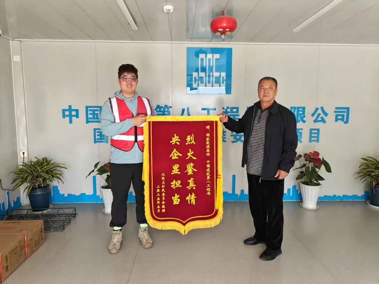 次日,村委會帶著錦旗和感謝信來到項目部,用“烈火鑒真情,央企顯擔當”十個大字表達了村民的感謝,信中特別點贊項目的“三精作風”,即“響應精敏、處置精準、奉獻精誠”,對項目團隊應急救援機制與地企聯防工作給予了高度肯定。