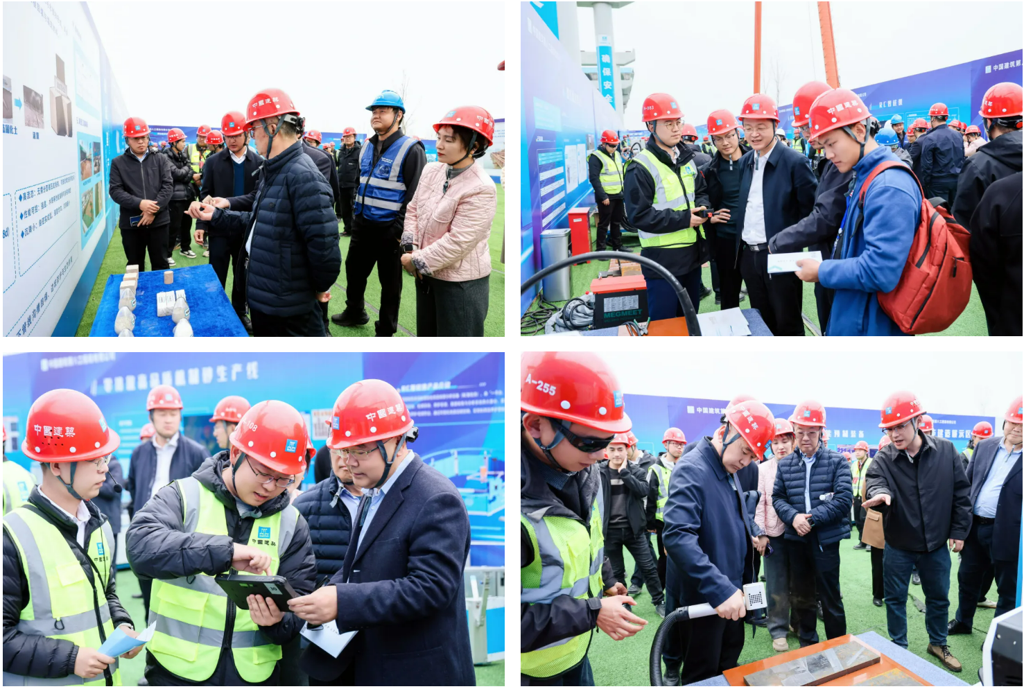 在現場觀摩環節,與會人員來到武漢都市圈環線高速(六環線)蔡甸段二標項目,實地了解公司在橋梁工程智能建造、數字化施工、精益管理、環境保護等方面取得的成果,對項目現場管控與成品質量予以肯定。該項目設置 “企業文化、綠色環保、智能建造、安全生產、質量管控”5 大展區,通過產品演示、展板解說等形式,展現 “智慧賦能、標準筑基、綠色優先” 的經驗成果。