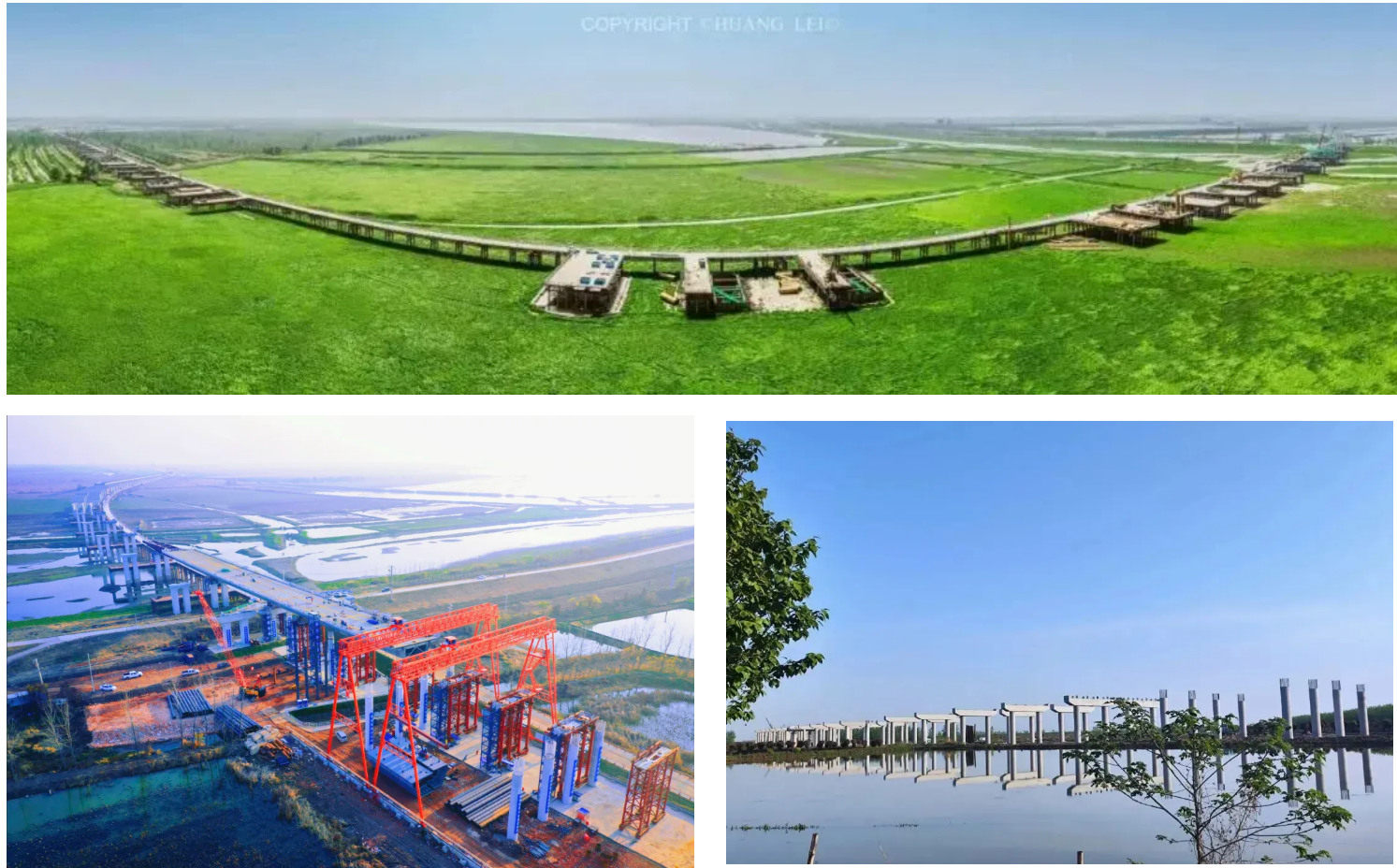 武漢都市圈環線全長約 360 公里,是湖北省 “十四五” 規劃重點工程,其中蔡甸段二標項目主線全長 14.16 公里,是中建八局首個穿越國際濕地的高速公路,涉水橋梁占比 90%,穿越地球上同一緯度湖泊群中唯一的典型淡水湖泊和沼澤濕地 “武漢蔡甸沉湖濕地”,攻克濕地保護與工程建設雙重挑戰,多次獲得業主與自然保護區管理局表揚。