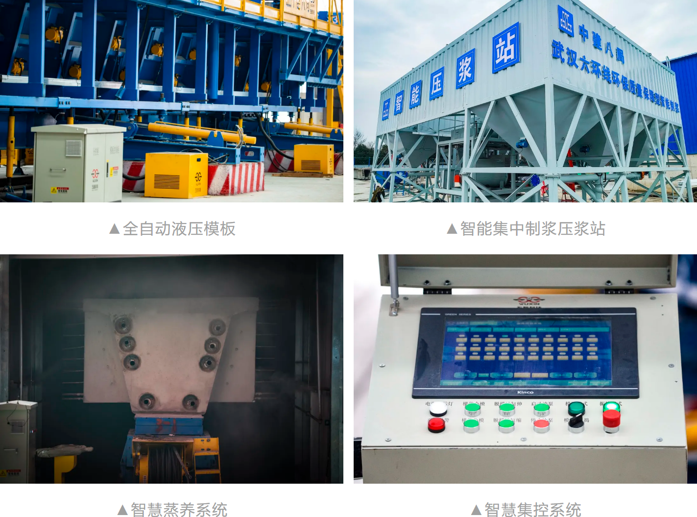 質量管控展區集中展示了項目智慧梁場的智能化生產線和施工工藝,包括全自動液壓模板、智能集中制漿壓漿站、移動底模臺車、智能鋼筋彎曲中心等設備,可實現各工序 “流水加工、無縫銜接”,生產線配備 “智慧集控系統”,提升梁體預制效率 40%。
