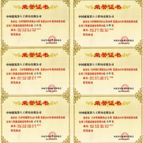 白沙綜合管廊項目在2019年度“河南省市政公用工程建設優秀質量管理小組”活動成果發布會獲多項QC成果