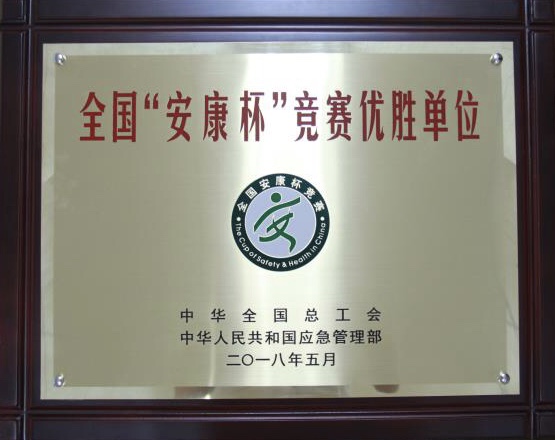 公司榮獲全國安全生產最高榮譽——全國“安康杯”競賽優勝單位