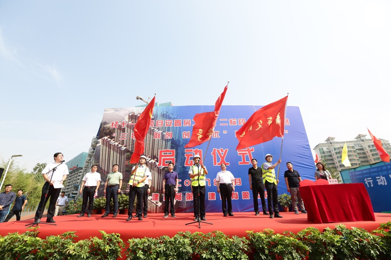 6月8日上午,經十一路項目安置房工程召開勞動競賽、“三號聯創”、創“雙優”暨“安康杯”競賽啟動儀式。