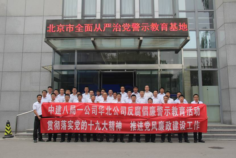 為深入學習貫徹習近平新時代中國特色社會主義思想和黨的十九大精神,深入推進黨風廉政建設和反腐敗工作,6月22日下午,一公司華北公司黨總支組織華北公司領導班子、副副職、機關部門經理、項目經理、項目書記等40余人參觀了北京市全面從嚴治黨警示教育基地。