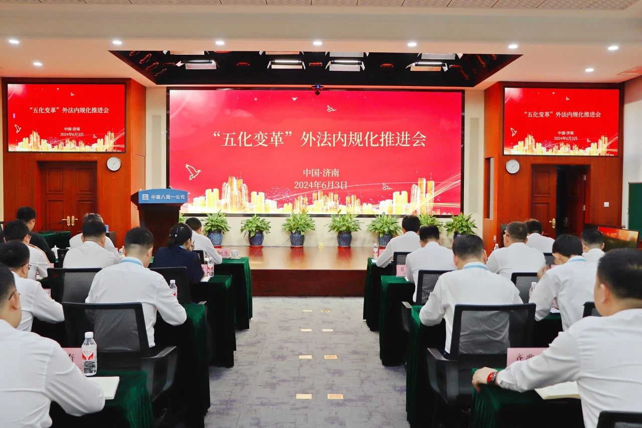 6月3日,中建八局一公司召開“五化變革”外法內規化推進會,分析當前形勢任務,剖析重難點問題,研究推進下一步重點工作。