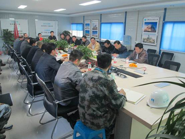 本次檢查共分六個組,每組由1名組長和3名組員組成。首先,在項目會議室局領導對局下半年安全檢查的要求、分工做了詳細的部署;其次項目經理文軍對華創觀禮中心項目概況、施工進展、安全文明施工、安全管理及標準化實施情況做了詳細匯報。