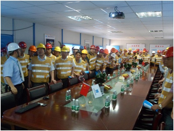 觀摩團(tuán)參觀了項(xiàng)目文化墻、工人生活區(qū)、辦公區(qū)及施工現(xiàn)場,了解了我局的發(fā)展歷史及現(xiàn)在的標(biāo)準(zhǔn)化安全文明生產(chǎn)管理情況,高度贊揚(yáng)了項(xiàng)目標(biāo)準(zhǔn)化管理。觀摩團(tuán)對項(xiàng)目工人生活區(qū)的管理,尤其是對工人宿舍統(tǒng)一配備冷暖空調(diào)、提供太陽能工人洗浴間、自動(dòng)熱水機(jī)、工友餐廳等給予了高度評價(jià)。