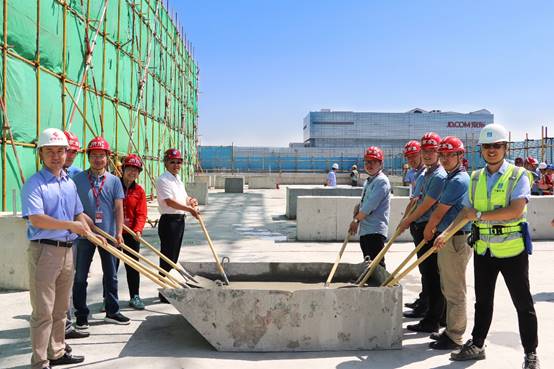 在各參建單位共同見證下,與會領導共聚塔樓樓頂,澆筑最后一方混凝土,標志著項目主體結構順利封頂,提前預祝京東618大賣。