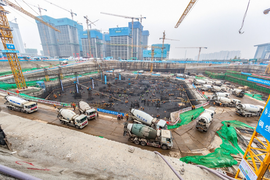 50小時、3.18萬立方!西北第一高樓完成筏板大體積混凝土澆筑