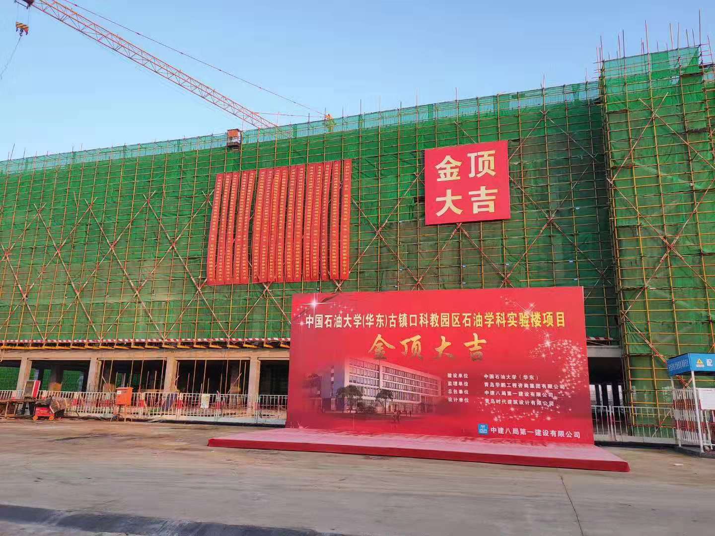 中國石油大學(華東)新校區首棟科研樓封頂