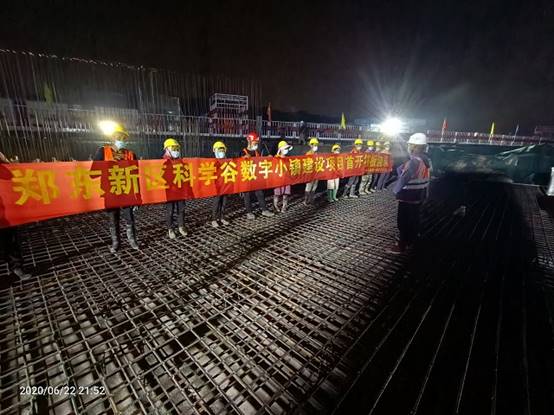 622日晚,鄭州市鄭東新區(qū)科學(xué)谷數(shù)字小鎮(zhèn)建設(shè)項(xiàng)目(一期)EPC總承包第二標(biāo)段綜合展示中心基礎(chǔ)筏板全線首開澆筑。