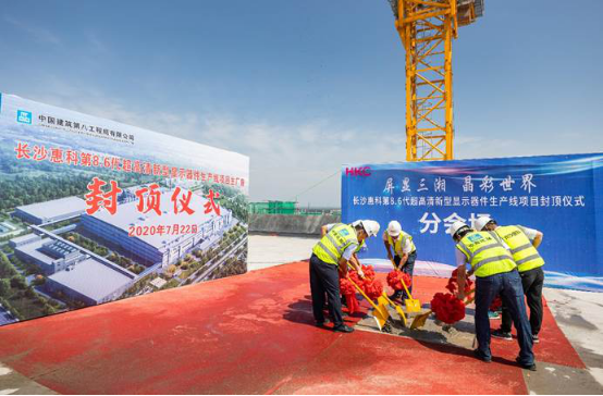 湖南省副省長陳飛,省政府副秘書長易佳良,長沙市委副書記、市長鄭建新,長沙市委常委、副市長夏建平,長沙市委常委、瀏陽市委書記黎春秋,長沙市副市長邱繼興,惠科集團總裁王智勇、執行副總裁盧集暉、副總裁及長沙惠科光電總經理杭井強,十一科技董事長趙振元,中建八局華南分局黨委書記許啟新,公司總經理、黨委副書記齊朋,公司華南公司總經理谷力,及長沙市、瀏陽市、惠科集團、中建八局等相關單位代表200余人出席封頂儀式現場。