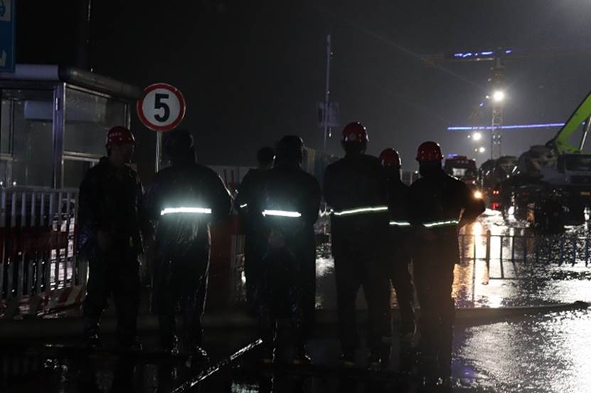 823日晚,項目管理人員冒著大雨巡視現場