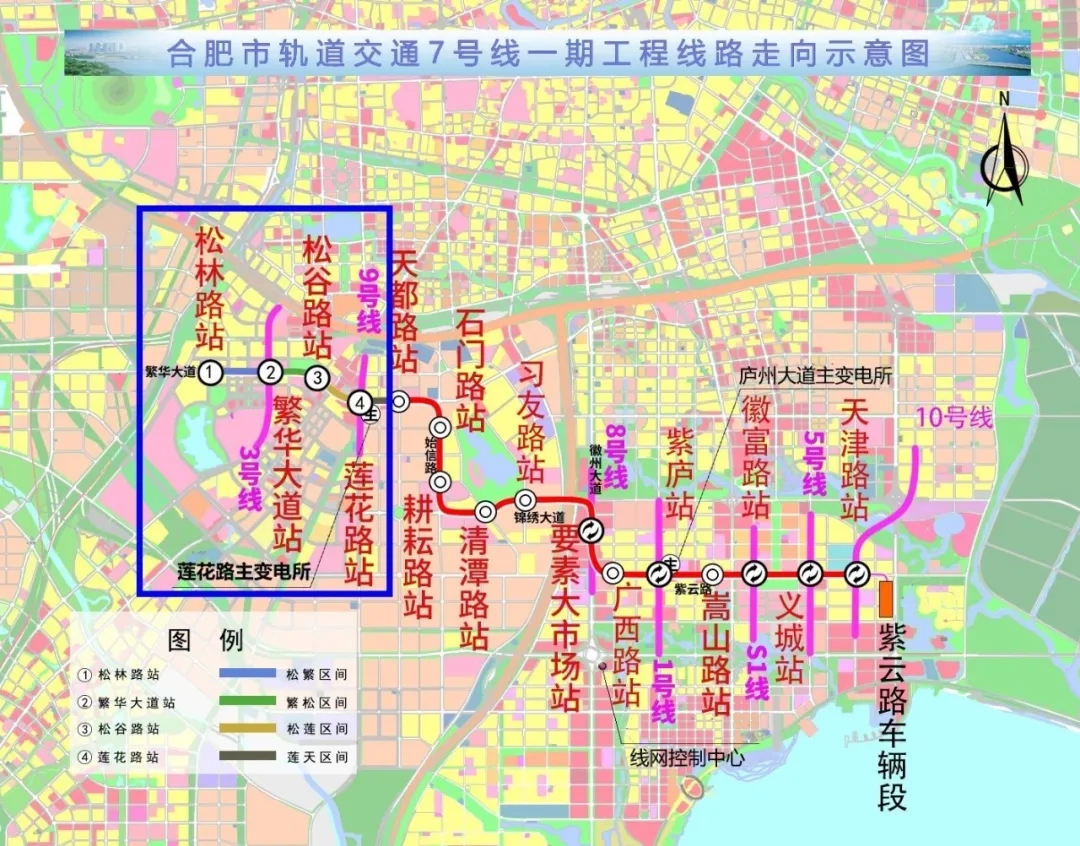 合肥地鐵7號線為線網加密線路,連接合肥高新區、經開區、濱湖中心,將1、2、3、4、5號線等徑向線路串聯起來,建成后將從根本上緩解中心區交通矛盾。