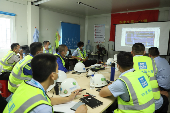 該項目時間緊、任務重,為了快速推動施工進程,項目部堅持“提前介入、策劃先行”的原則,從大局出發,于11日晚上主動協助土建單位開展臨電接駁;并在13日協助中建科工組織廚房標段參建單位碰頭會,集體協商施工計劃、物資安排,力求施工效率最大化。