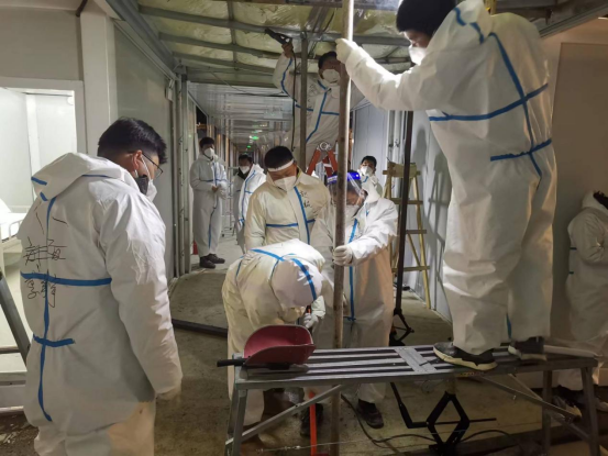 3月18日,在接到吉林市高新南區(qū)隔離方艙建設(shè)任務(wù)后,公司副總經(jīng)理寧文忠擔(dān)任總指揮,華北、安裝、裝飾公司迅速部署,僅用5個(gè)小時(shí)完成人員調(diào)配、核酸檢測(cè)和后備物資的集結(jié)。首發(fā)隊(duì)伍于當(dāng)晚六點(diǎn)出發(fā),星夜兼程、跨越千里奔赴吉林。