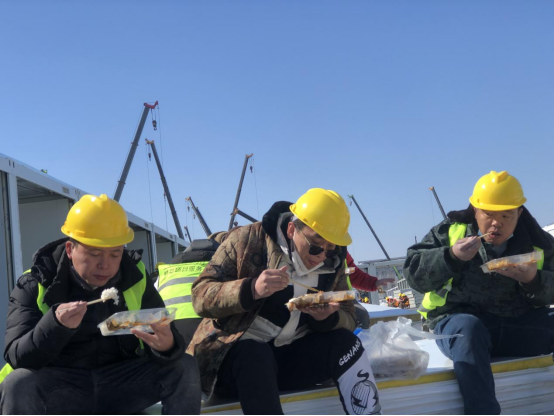 3月的吉林氣溫低至0℃,中建八一1300余名建設(shè)者“零點(diǎn)”作戰(zhàn),跟疫情搶時(shí)間,12小時(shí)內(nèi)完成A5區(qū)全部機(jī)械布置,24小時(shí)內(nèi)完成A5區(qū)全部底板拼裝,48小時(shí)內(nèi)完成654間板房主體拼裝,72小時(shí)內(nèi)完成654間板房墻板及門(mén)窗安裝。
