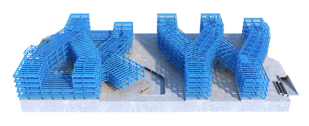 項目外立面采用玻璃幕墻+穿孔鋁板的雙層幕墻系統(tǒng),層次分明、美觀大氣、園區(qū)園林綠化、鋪裝園路、園藝小品、異型廊架、眼瞼雕塑采用精細化布局,營造舒適、便捷、高效的辦公環(huán)境。項目地上4棟樓均為鋼框架結(jié)構(gòu),總用鋼量達7800噸,其中,城市展覽館V型柱懸挑區(qū)最大跨度達8米,創(chuàng)新研究院與實驗樓連廊結(jié)構(gòu)最大跨度達30米,施工難度較大,項目團隊充分發(fā)揮總承包管理優(yōu)勢,引進胎架支撐、圓管支撐、雙機抬吊、BIM綜合應(yīng)用等多項技術(shù),提高質(zhì)量管理整體水平,助力項目保障精益建造、高品質(zhì)履約。