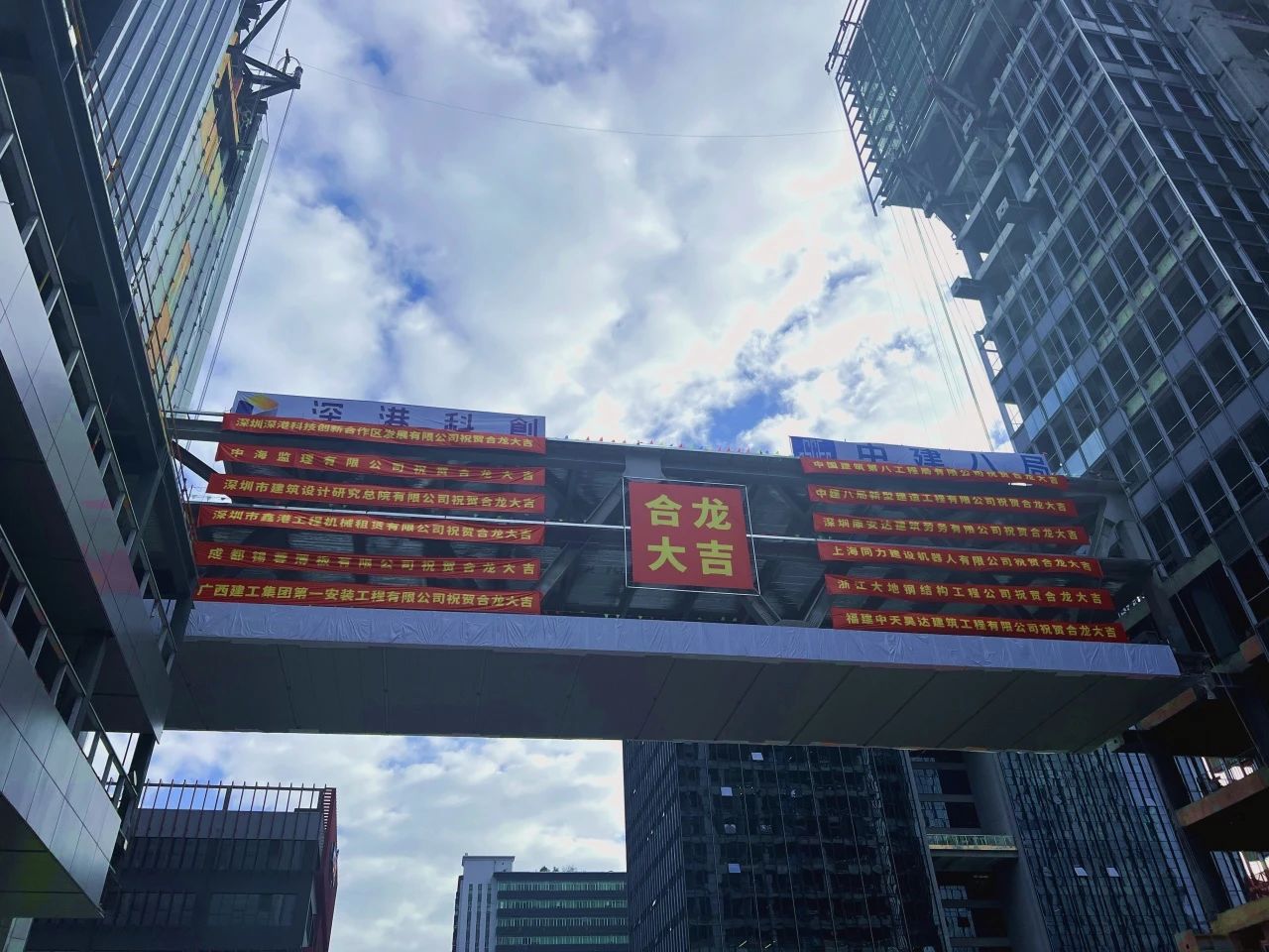 12月13日,深圳深港科創開放創新中心項目舉辦空中鋼連廊提升儀式,深圳深港科技創新合作區發展有限公司董事長丁海成、總裁吳寅驍、副總裁李春雷,深圳市建筑設計研究總院第二分院院長鄭文星,中建八局華南分局代表參加儀式。