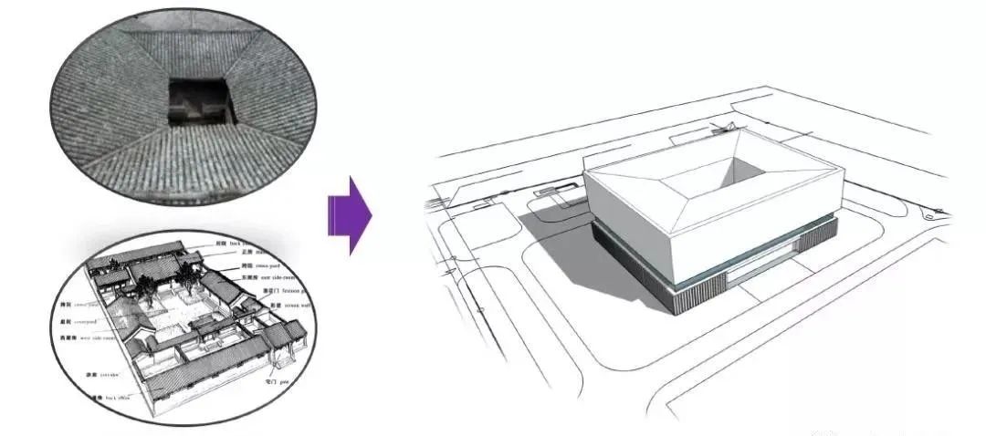 在建筑布局設計上,借鑒中國傳統民居“四水歸堂”設計理念,在江南民居獨有的平面布局方式上加以創新,注重軸線對稱,傳承中國文化,體現出中國正統建筑的莊嚴性與儀式感。