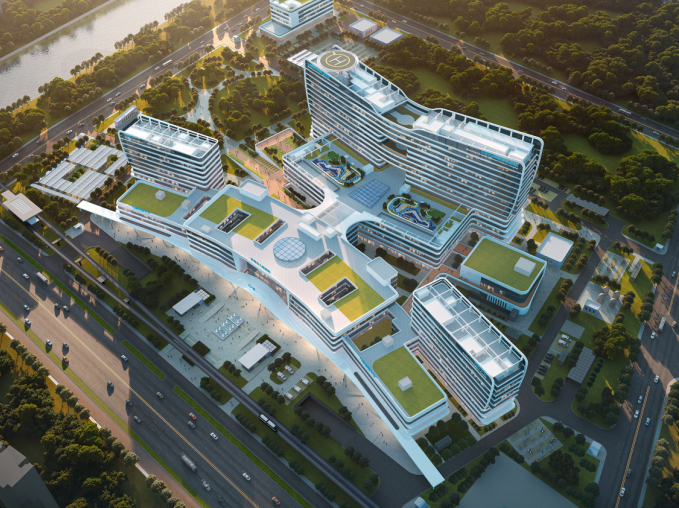項目主要建設醫療綜合樓、感染樓、發熱門診、配套用房及地下設施,屋面設有直升機停機坪,可滿足國內絕大部分主流醫療救援機型,將大幅提升應急診治輻射范圍,室內空間充分考慮兒童心理特征,外部設有空中花園與童趣樂園,打造有趣有愛的兒童友好型醫院。