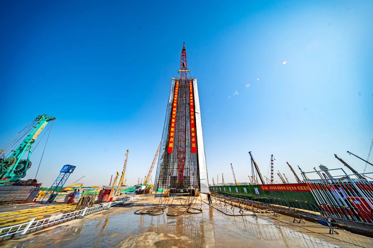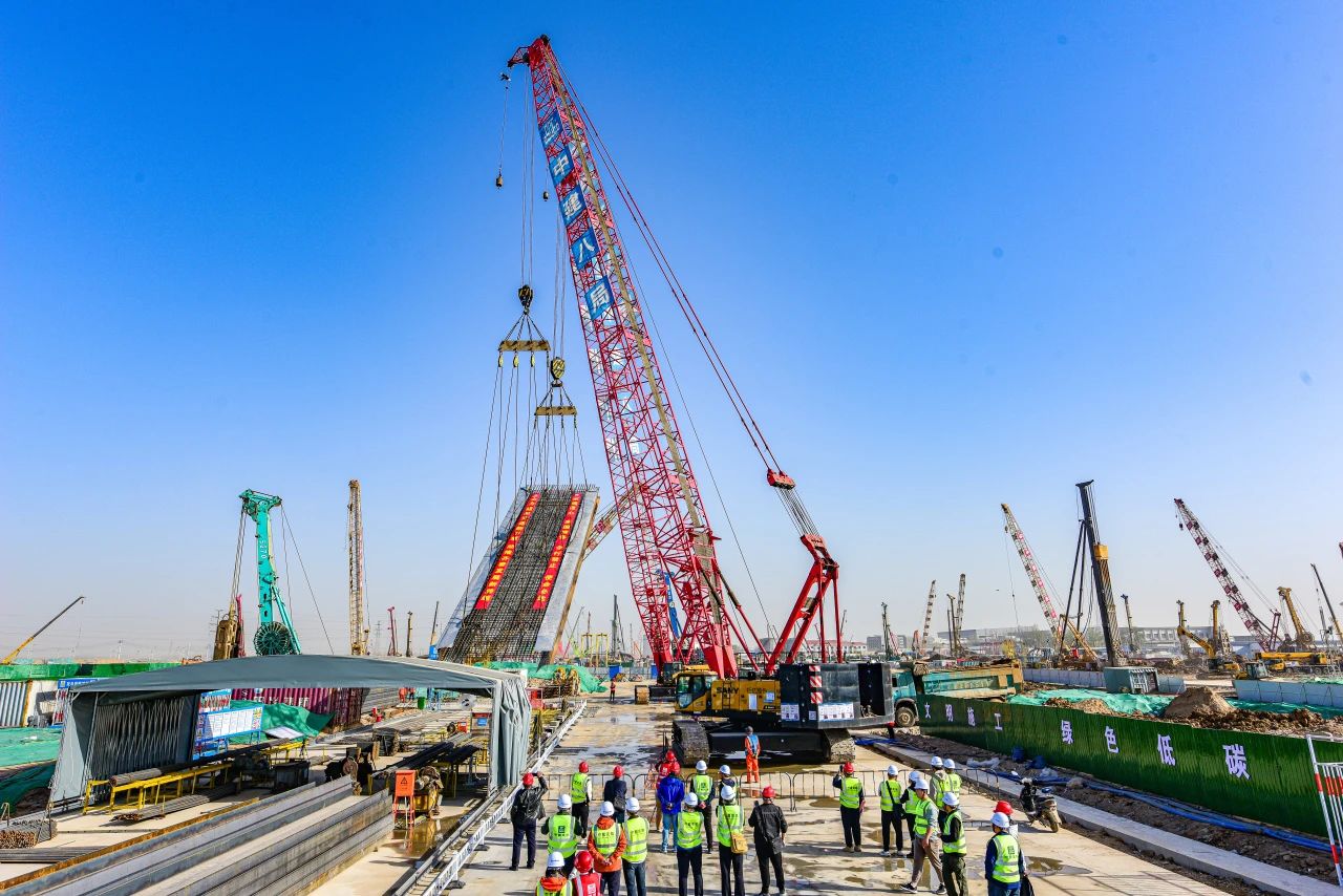 三月的濟南,春光明媚。在濟濱高鐵遙墻機場站施工現場機械轟鳴,熱火朝天,兩臺超百噸的履帶吊成功吊起重達38.22噸的地連墻鋼筋籠,“鋼鐵巨網”在空中實現“回直”,順利完成首幅吊裝入位,為圍護結構連續施工奠定堅實基礎。