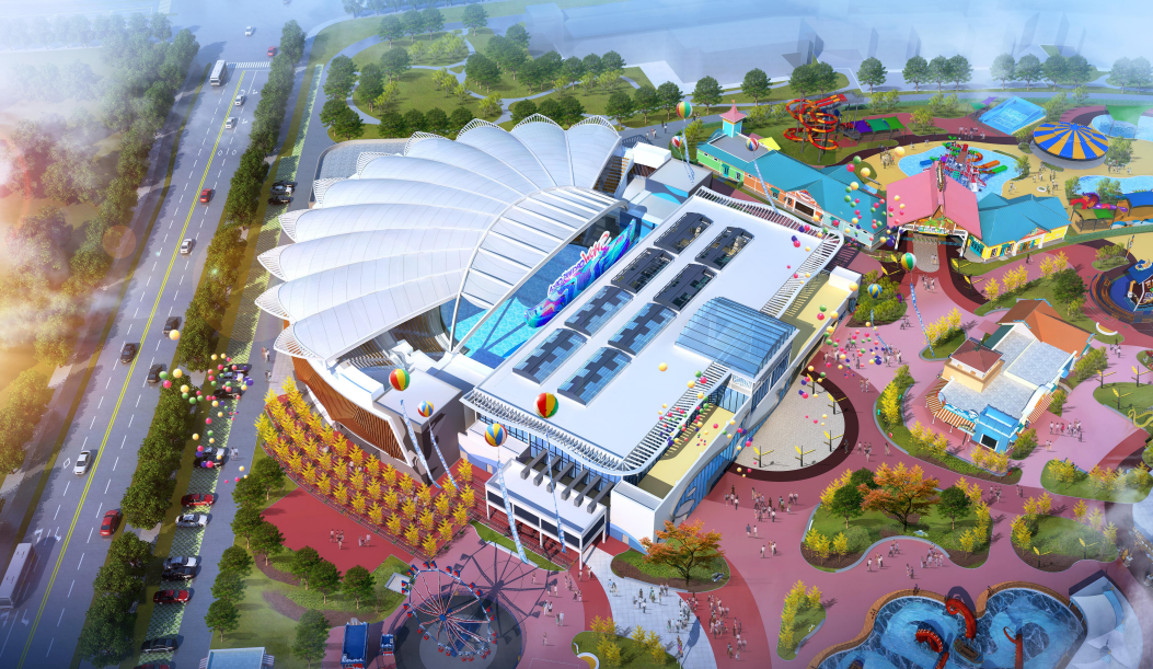 項目二期占地7.32萬平方米包含虎鯨館、主題餐廳及水上游樂設施預計2024年7月完工作為中原地區最大的虎鯨表演場地虎鯨館總建筑面積2.4萬平方米由三個水池及一個看臺組成可容納3600名觀眾