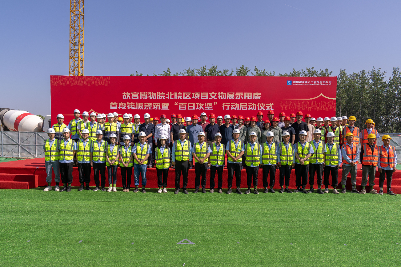 為激發建設者勞動熱情,聚力攻堅下一階段目標任務,5月17日,中建八局承建的故宮博物院北院區項目舉行首段筏板澆筑暨“百日攻堅”行動啟動儀式,標志著文物展示用房全面進入主體結構施工階段。