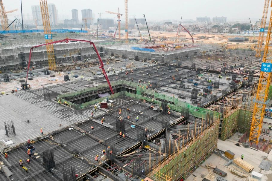 面對近40萬平方米的超大建造面積,混凝土澆筑一次成優尤為重要,項目建設過程中創新采用“跳倉法+錯口縫”施工工藝,超長結構按適宜大小分倉,設ABCD四個分區,劃分56個流水段,相鄰分倉施工縫設置錯口縫,降低施工縫部位滲漏風險。