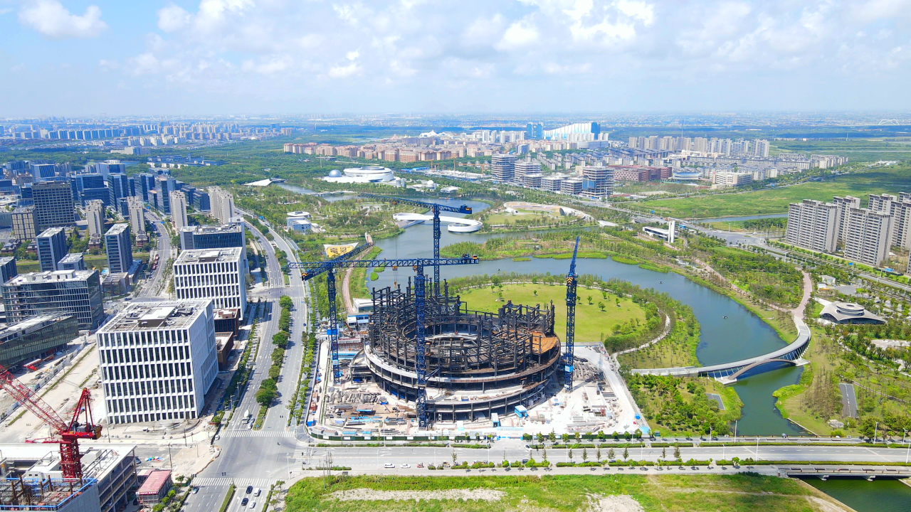 鋼結(jié)構(gòu)封頂!臨港“星空之環(huán)”外形初顯