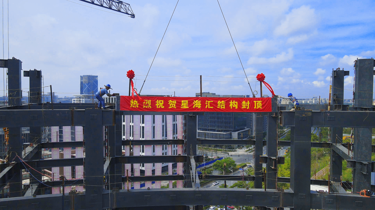 8月20日隨著封頂鋼梁的吊裝完成擁有國內(nèi)地上最高室內(nèi)亞克力深潛池的臨港星海匯項目完成主體鋼結(jié)構(gòu)封頂項目建設按下“加速鍵”