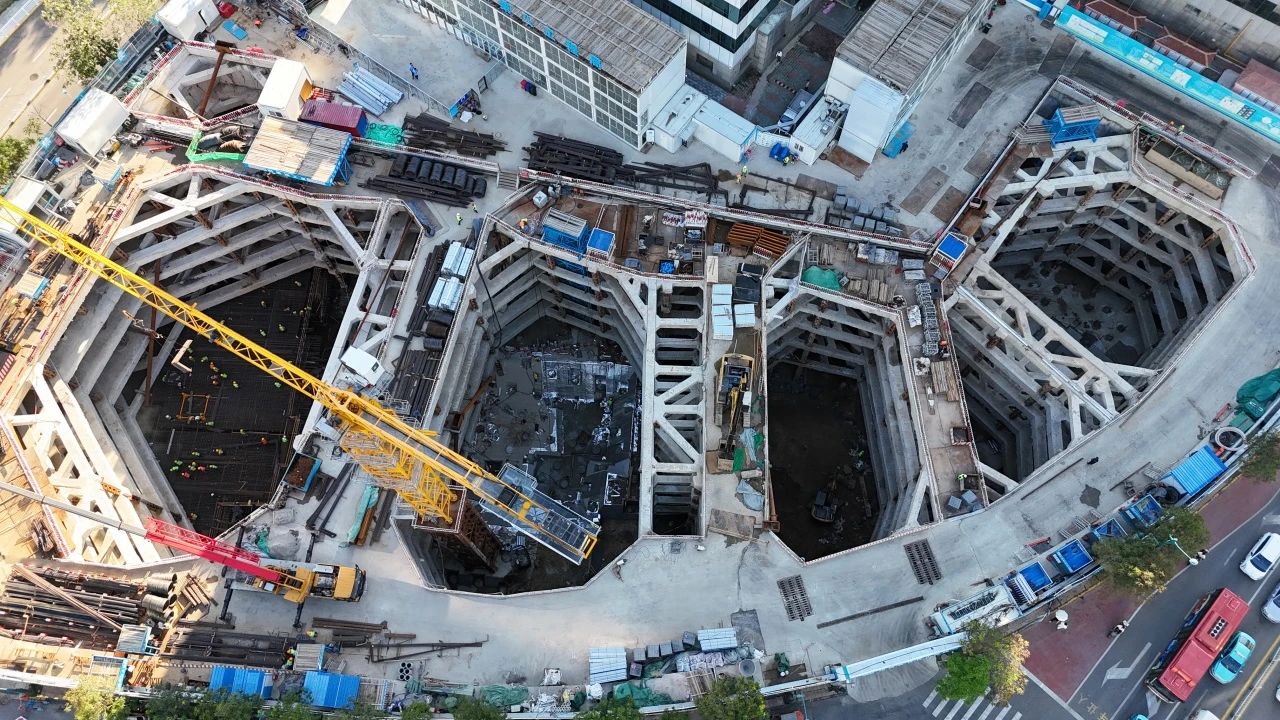 自2023年11月23日開工以來,項目跑步進場、高效推進,形成清障應急響應機制,分階段細化場地布置,解決場地狹小帶來的困難,底板澆筑前,連續開展三輪施工策劃會,全面梳理潛在風險、完善措施,確保混凝土順利澆筑。