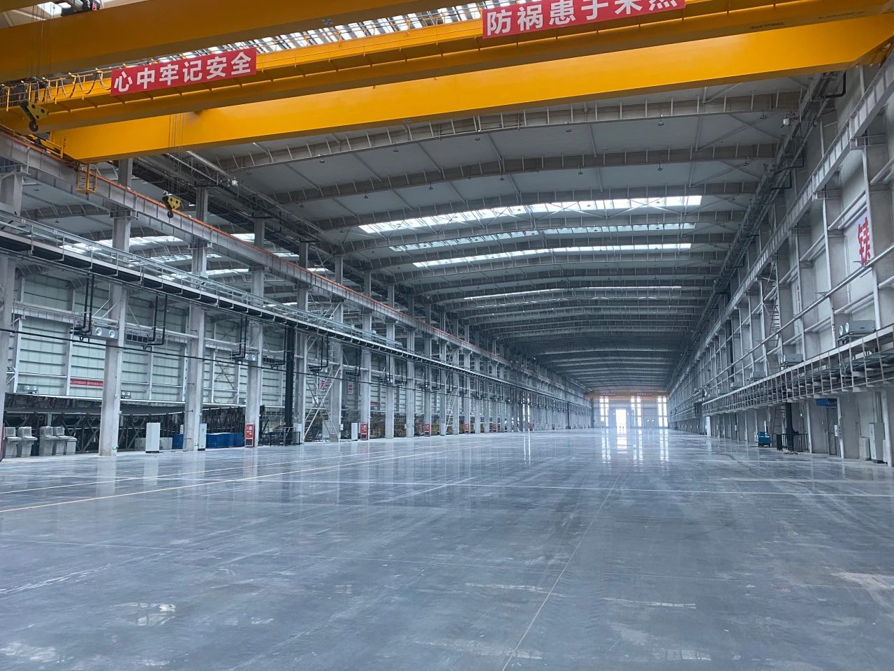 自2023年2月14日開工以來,項目按照“適時生產”管理思路,順利攻克一批關鍵節點:3個月完成首座單體封頂、90天完成單體7萬平方米鋼結構廠房的結構施工。