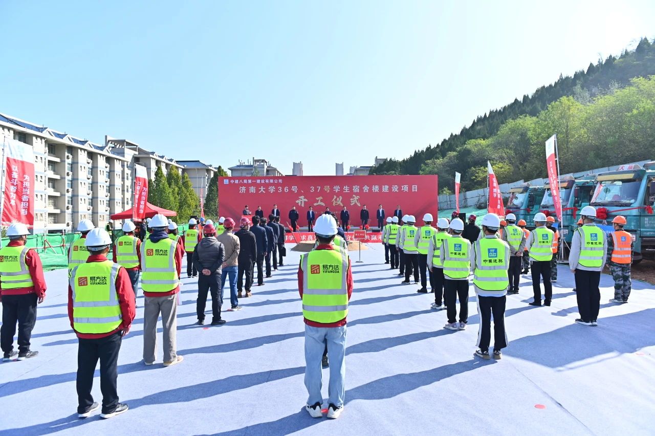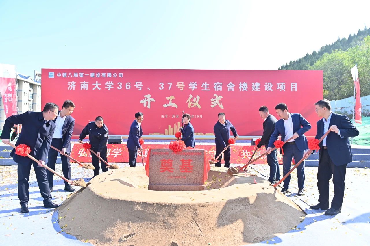 10月23日,濟南大學36號、37號學生宿舍樓項目舉行開工儀式,濟南大學黨委書記劉春華,黨委副書記、校長劉宗明,黨委常委、副校長李強,七賢街道黨工委副書記、總工會主席、武裝部部長王金龍,山東建筑大學設計集團有限公司黨委書記梁洪峰,山東易方達建設管理集團有限公司黨委書記、董事長、總經理牛勇,中建八局一公司黨委書記、董事長齊朋及濟南公司相關負責人參加。