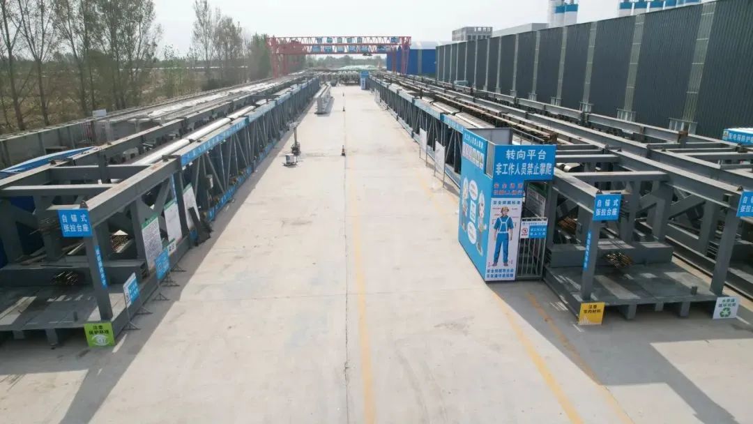 項目在山東省內(nèi)高速公路項目建設中首次應用折線法先張工字梁針,對黃河特大橋北側(cè)堤外引橋592片先張法工字梁施工;項目聯(lián)合山東省交通規(guī)劃設計院共同打造桁架自錨式整體張拉臺座,一個臺座可同時生產(chǎn)三片梁,具有通用性強、周轉(zhuǎn)率高、地基承載要求低、制梁效率高且質(zhì)量可控等優(yōu)點。