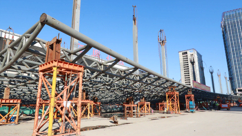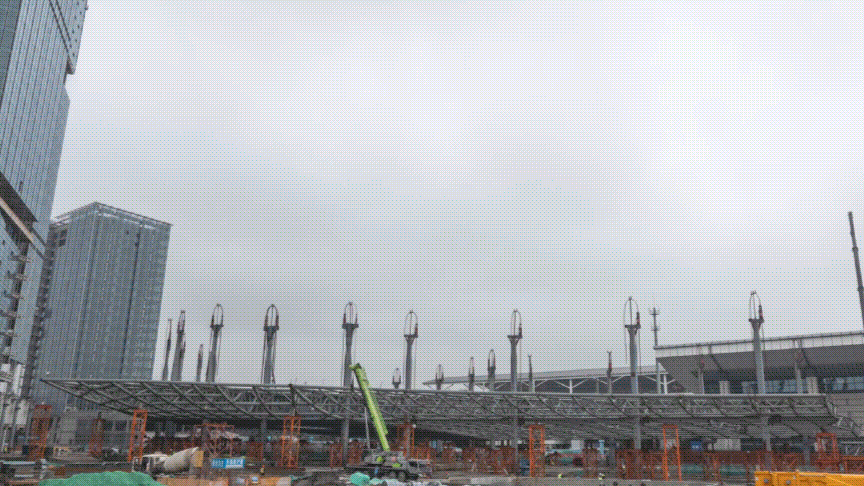 紹興高鐵北站TOD綜合體項(xiàng)目(A區(qū)塊)完成Q5樞紐管桁架全面提升
