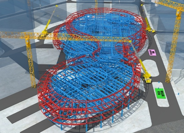 “共享云臺”以流暢多變的鋼結構造型將“云”的形態具象為“共享”平臺,為了完美演繹雙曲飄帶造型屋頂,項目應用三維激光掃描+BIM建模技術,將施工誤差控制在2毫米以內。