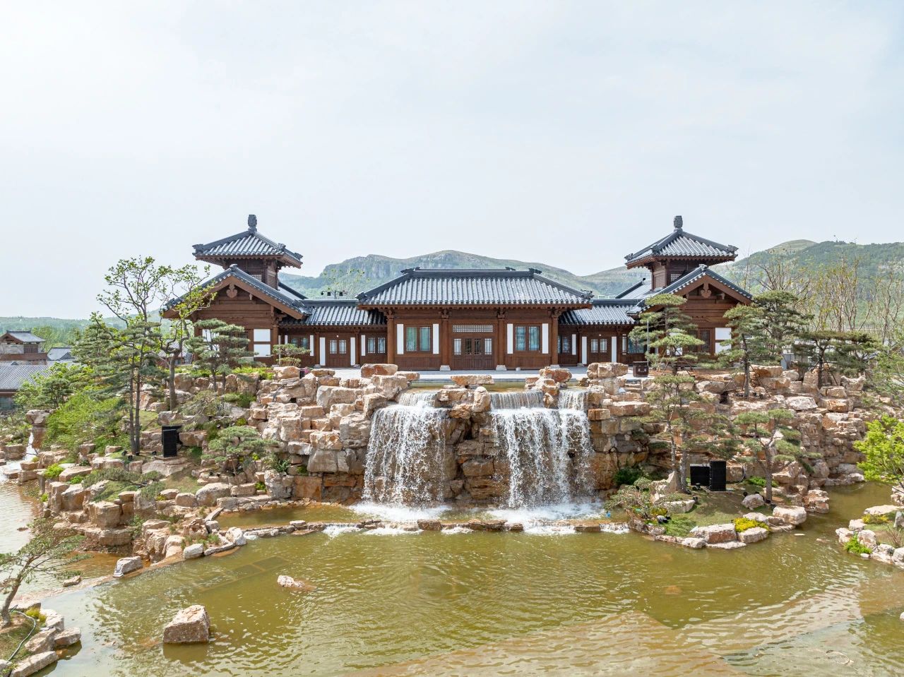 項目制高點文昌閣應用古代圓形攢尖屋頂設計,屋面108壟瓦對應星辰,12道脊代表十二時辰,登頂可俯瞰尼山全景。