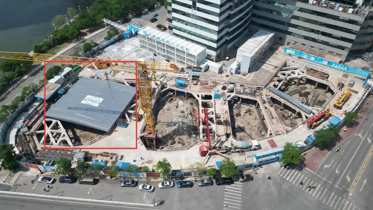 項目南臨海河最近距離僅30米,基坑比海河底部還要深8米,滲水形成的淤泥質軟土對施工影響較大。項目團隊根據地連墻深度和承壓水層分布,優化降水井布置和局部深坑疏干井數量,有效避免了邊坡失穩、坑底隆起等風險,現場常駐專業應急搶險隊伍,在地基外部涌動“萬噸河水”的情況下,安全高效完成基坑作業。