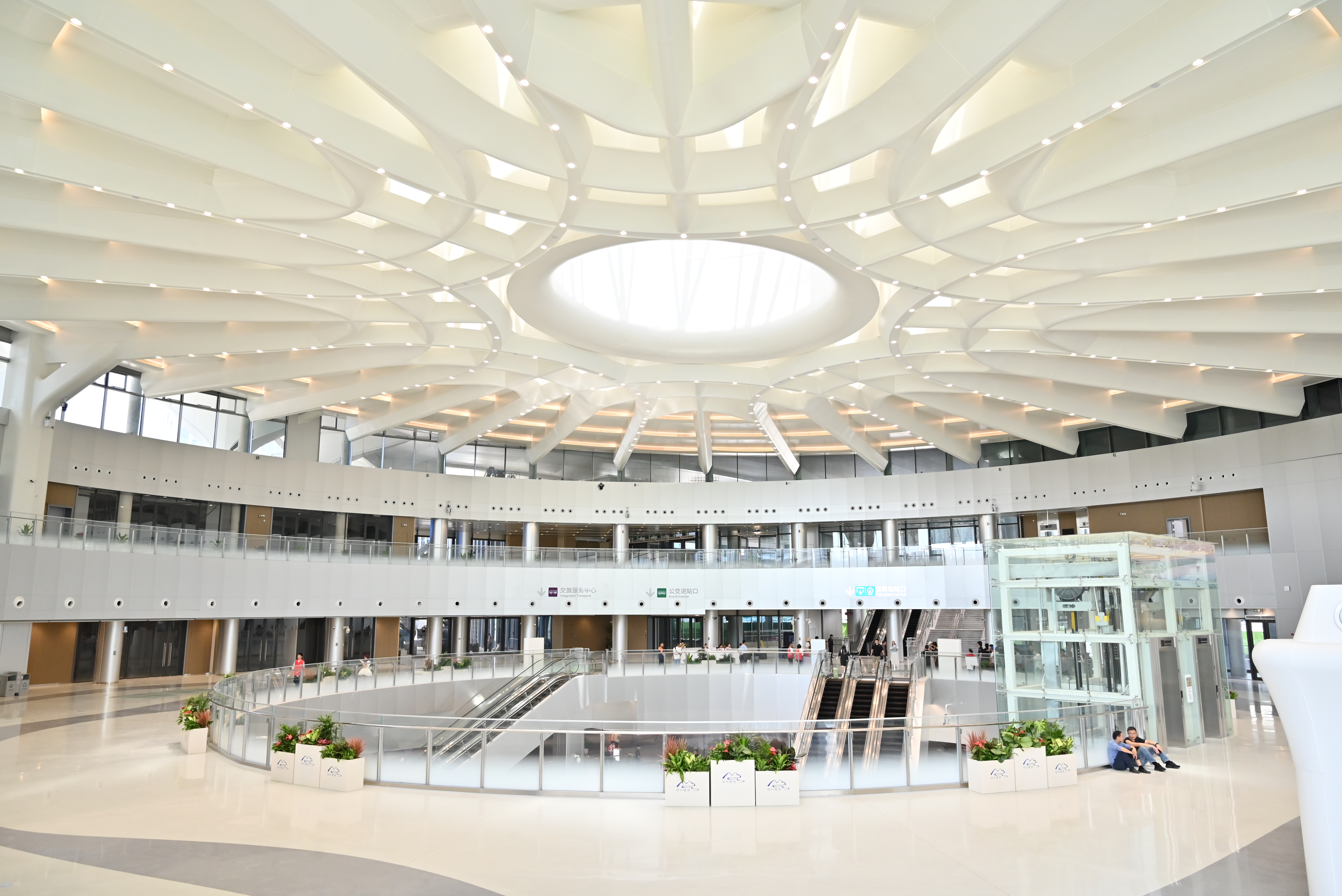 項目開展“百日攻堅”勞動競賽,持續優化協調組織、激發建設熱情。高峰時期,現場建設者超1200人,登高車、曲臂車、吊車等大型機械140余輛。40天內完成了6000余噸鋼結構施工,100天內完成6萬平玻璃幕墻、鋁板安裝、2.6萬平精裝修以及2.4萬平室外園林的施工,有力保障交通樞紐區域如期運營。