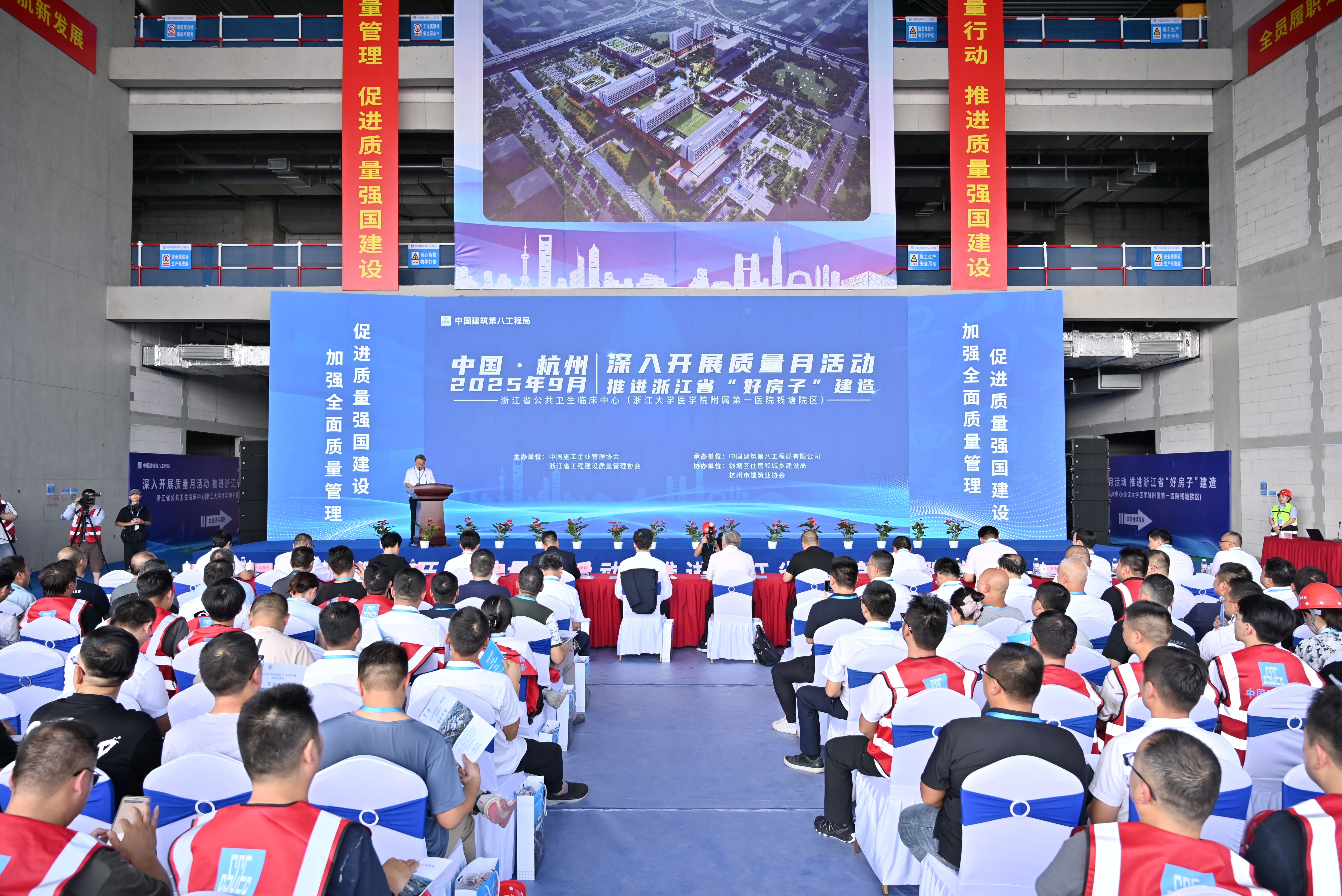 9月16日,浙江省“醫(yī)療好房子”工程質(zhì)量現(xiàn)場觀摩會在中建八局一公司浙江大學醫(yī)學院附屬第一醫(yī)院錢塘院區(qū)項目舉行。活動由中國施工企業(yè)管理協(xié)會、浙江省工程建設質(zhì)量管理協(xié)會主辦,中建八局承辦,錢塘區(qū)住房和城鄉(xiāng)建設局、杭州市建筑業(yè)協(xié)會協(xié)辦。浙江省住房和城鄉(xiāng)建設廳、浙大一醫(yī)院、中建八局、杭州市建筑業(yè)協(xié)會、錢塘區(qū)衛(wèi)健局等相關負責人,浙江省各地市行業(yè)主管部門、行業(yè)協(xié)會、企業(yè)代表等共400余人參加。
