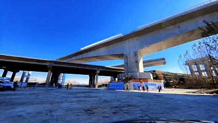 京臺高速齊濟段改擴建項目是國內首條 “6 改 12” 車道的高速公路,中建八局承建部分全長 15.9 公里,此次轉體橋段為全線唯一轉體立交橋路段,且實現國內首次 “先跨高速公路再轉體跨越繁忙干線鐵路” 的施工模式。兩座轉體橋分別重 21000 噸、29000 噸,橋面距地面高度達 33 米。