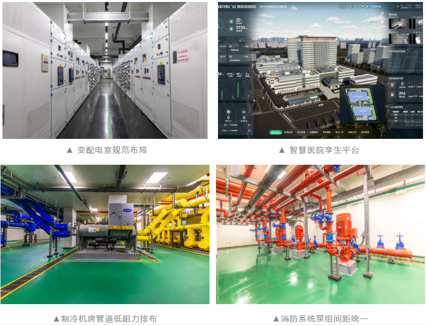 項(xiàng)目變配電室布局規(guī)范、接地可靠,水電井管道排列有序、封堵密實(shí),冷水機(jī)組功能分區(qū)精準(zhǔn),同時(shí)建設(shè)智慧醫(yī)院孿生平臺(tái),在運(yùn)營(yíng)層面支持設(shè)備遠(yuǎn)程運(yùn)維,保障設(shè)備快速檢修與院區(qū)穩(wěn)定運(yùn)行。