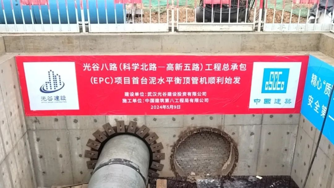 近日,隨著“鐵軍號”刀盤緩緩破入洞口,中建八局承建的武漢光谷八路項目,首臺泥水平衡頂管機順利始發,標志著項目進入頂管施工階段。