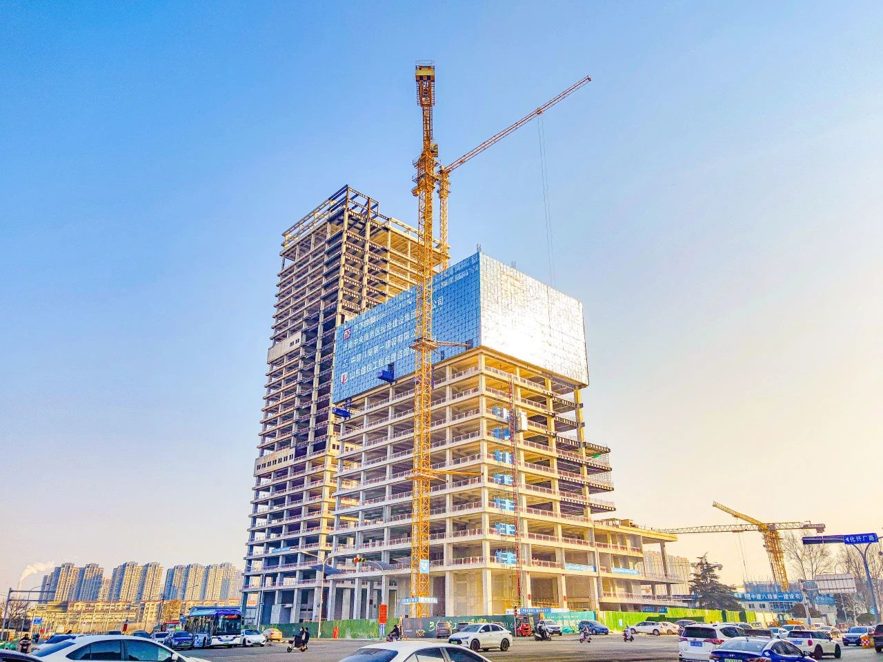 中建八一承建的中國中醫科學院廣安門醫院濟南醫院項目主體結構全面封頂
