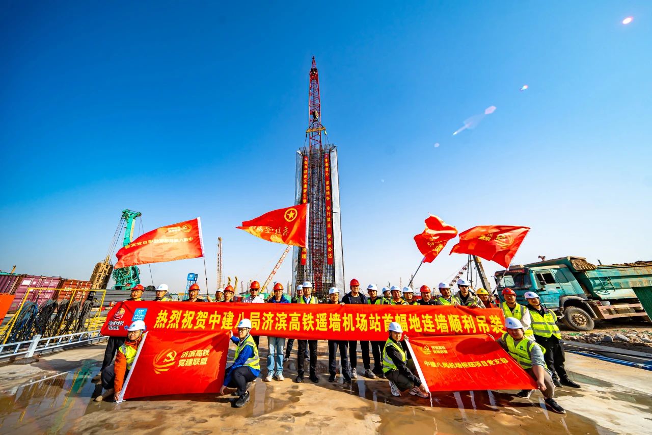 三月的濟南,春光明媚。 在濟濱高鐵遙墻機場站施工現場機械轟鳴,熱火朝天,兩臺超百噸的履帶吊成功吊起重達38.